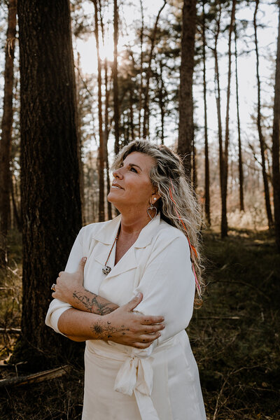 “Ik ben op een heel bijzondere manier bij jou gekomen. In een podcast hoorde ik Tessa Koops praten over iemand bij wie ze een baarmoederhealing had ondergaan. Dat raakte me meteen, en zonder haar persoonlijk te kennen, stuurde ik Tessa een e-mail met de vraag wie deze bijzondere vrouw was. Dat bleek jij te zijn! Vanaf dat moment wist ik: daar moet ik naartoe. Al langere tijd was ik op zoek naar iemand die mij in dit stuk kon begeleiden. Ik ging er met een open hart in, op zoek naar mijn vrouwelijke kracht en zijn. Jij was er met zoveel liefde en echte aandacht voor mij. Ik heb me door jou echt gedragen gevoeld, zelfs op de zwaarste momenten, wanneer ik zomaar een appje kreeg omdat je aan me dacht, of zelfs een bloemetje. Wauw, zoveel liefde en oprechte zorg! Ik heb zelf geen lichtgids-poppetje ontvangen, maar wél een geboortekaartje mogen maken. Dat proces bracht me zoveel creativiteit en tegelijkertijd een diepe fascinatie voor de reis die we allemaal afleggen. Met trots staat het te stralen op mijn altaar, en deze sessie zal ik nooit vergeten. Daarnaast heb jij me de eerste stapjes laten zetten in het ontvangen, een les die me zoveel kracht en dankbaarheid heeft gebracht. Ik ben ontzettend blij dat ik mijn intuïtie volgde toen ik die podcast luisterde, want daardoor mocht ik jou ontmoeten. Een échte oermoeder, bij wie je je veilig kunt laten dragen. Dankjewel, mooie, krachtige vrouw! ”