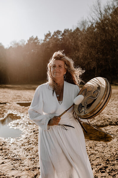 Helende klanken met stem, drum en stilte waarbij de taal van de spirits wordt vertaald naar aardse klanken.